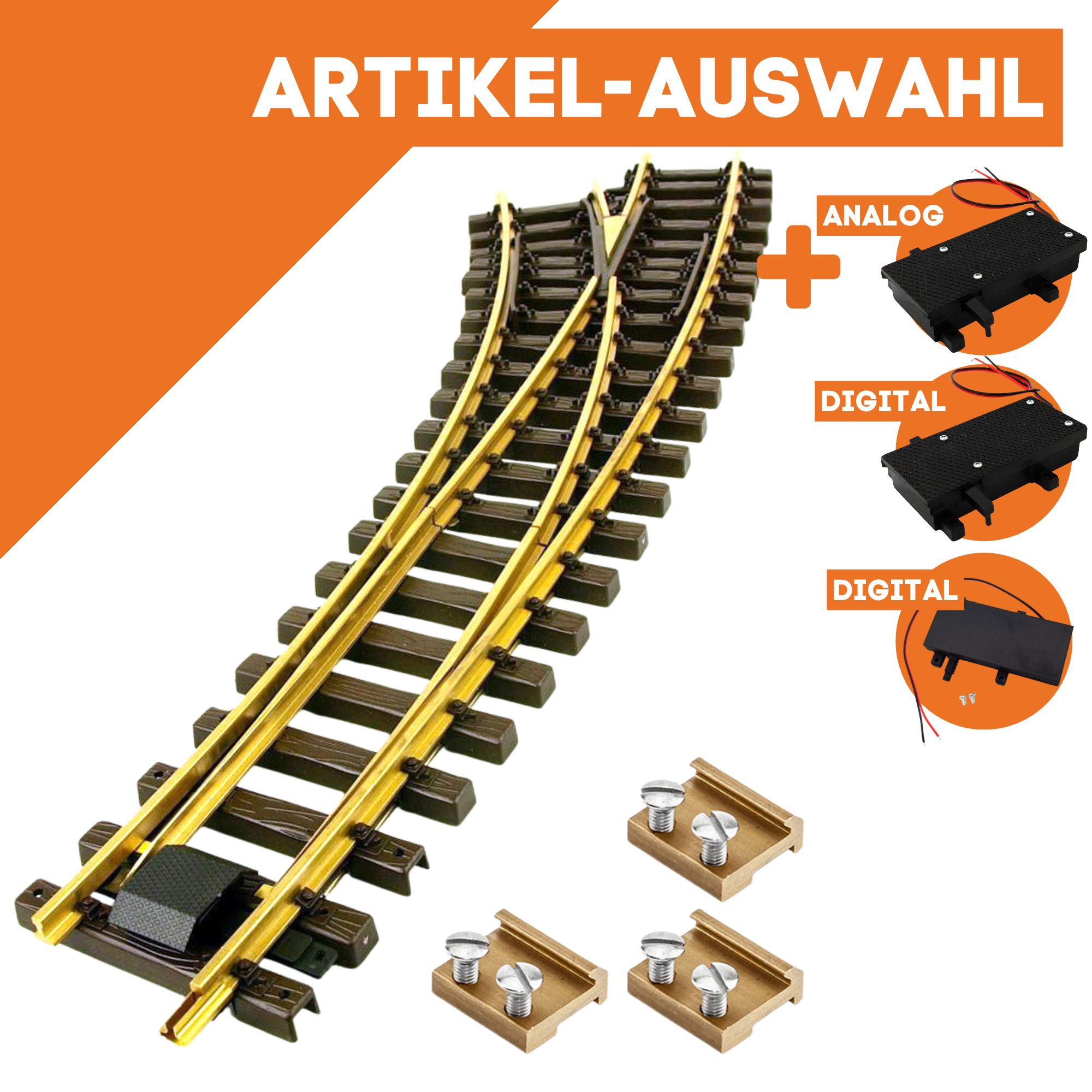 Mitgelieferte Verbinder stellen mechanisch feste und elektrisch leitfähige Anschlüsse zum Bestandsgleis her. Einheitliche Anschlussmaße erleichtern Planung, Erweiterung und spätere Nachrüstung, ohne den Verlauf zu verändern. So bleibt die Montage übersichtlich und das Schaltverhalten langfristig reproduzierbar.