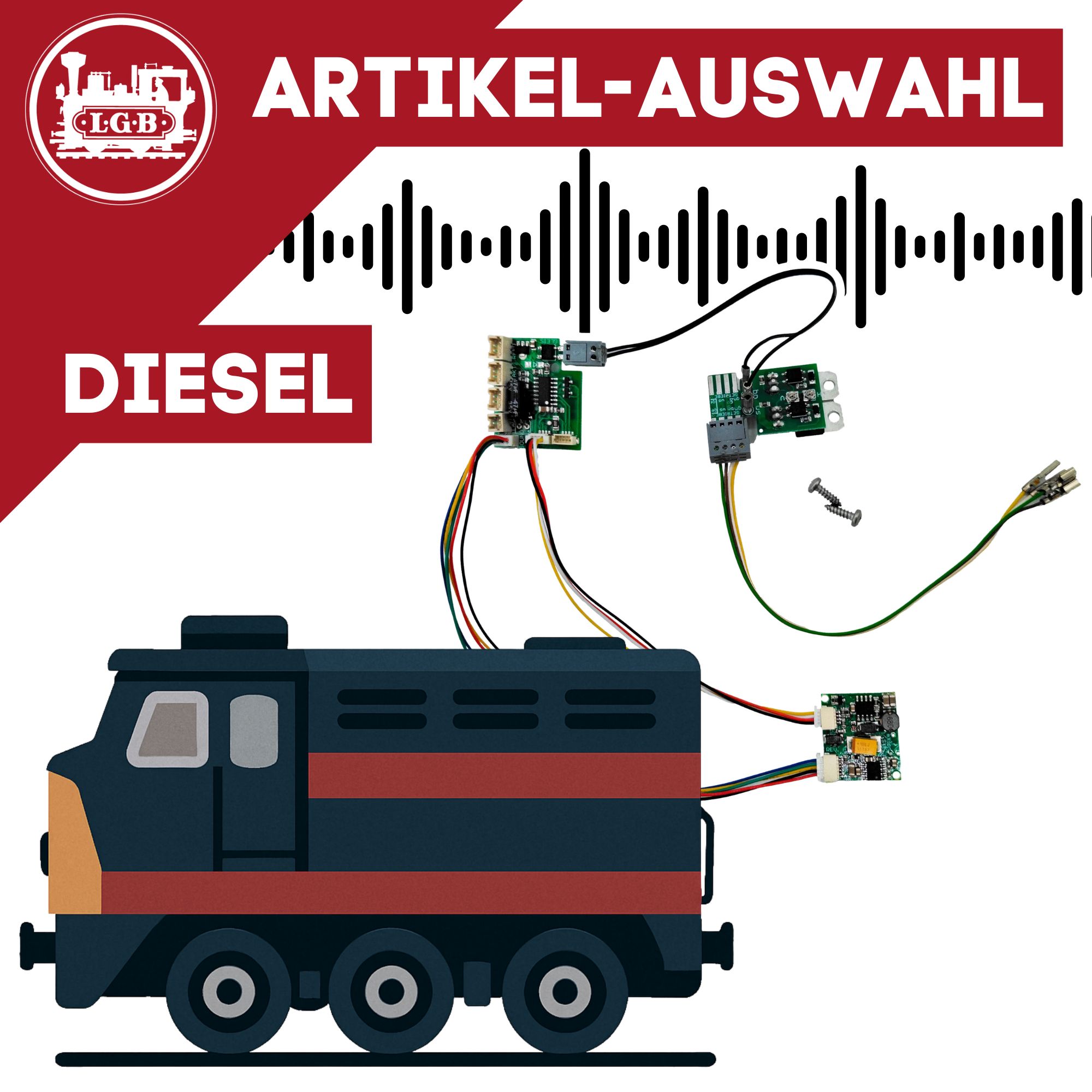 Analoge Sound-Sets für Diesel-Loks mit mehreren wählbaren Klangvarianten, jeweils auf bestimmte LGB-Modelle abgestimmt. Der Betrieb erfolgt ohne Digitaldecoder, Trigger wie Reedschalter oder Taktgeber koppeln die Wiedergabe an Anfahrt, Lastwechsel und Ausrollen.