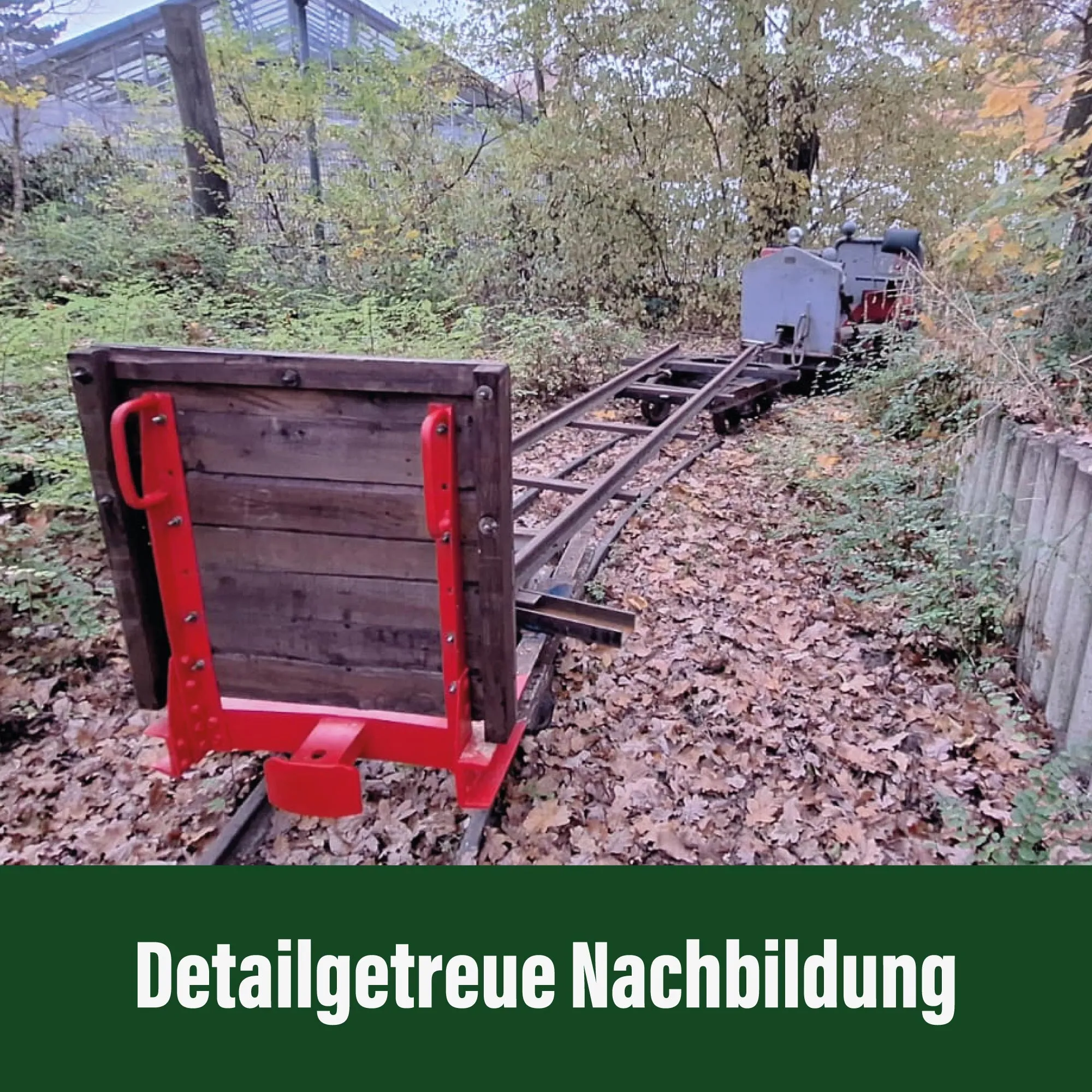 Die Lore mit Seitenwänden von ML-Train wurde originalgetreu nach dem Vorbild der Loren des "Feldbahnprojekt e.V. Berlin" gestaltet und bietet ein authentisches Modellbahnerlebnis.