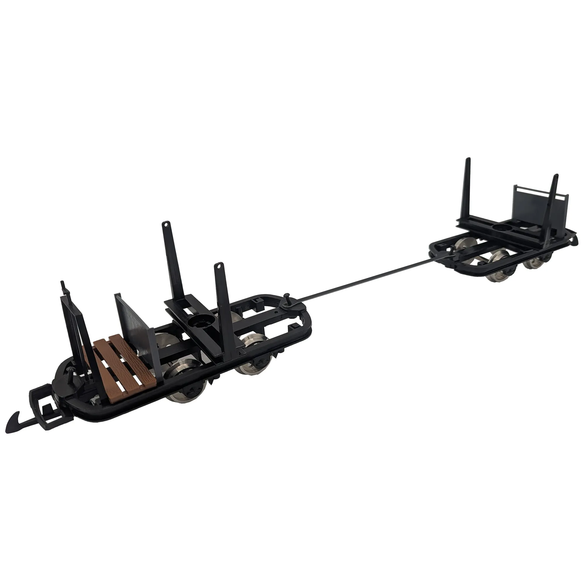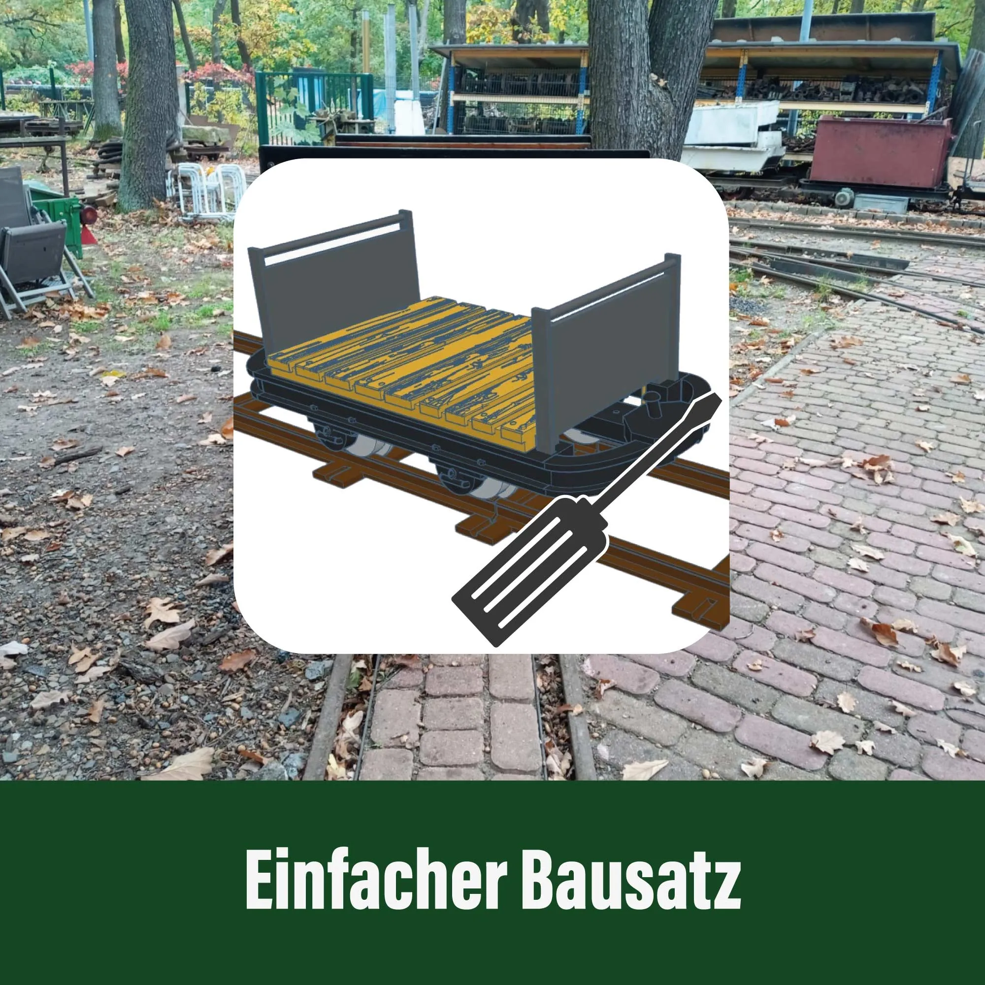 Dank des durchdachten Designs lässt sich der Wagen ohne Klebstoff montieren – die Wände sind abnehmbar, wodurch er flexibel für verschiedene Ladegüter wie Schienen, Holz oder andere Baumaterialien verwendet werden kann. Die Verbindung der Loren kann klassisch per Kupplung, jedoch auch per Kupplungsstange oder Kette erfolgen, was eine realistische Darstellung von Feldbahnzügen ermöglicht.