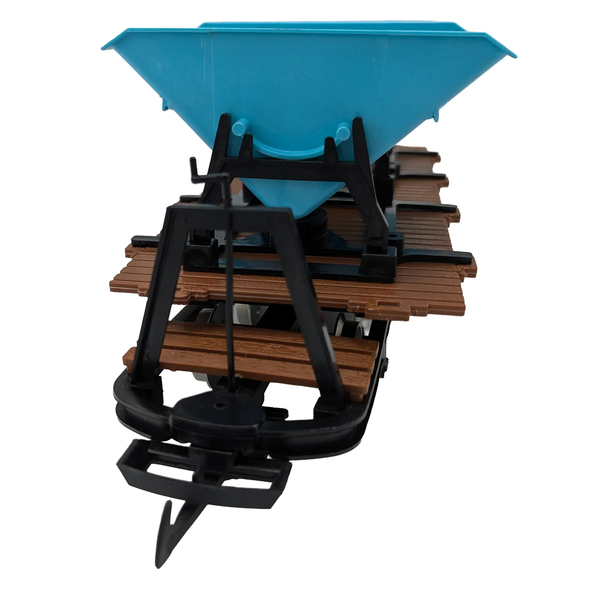 Im praktischen Anlagenbetrieb erzählt der Bausatz eine schlüssige Geschichte: An der Beladestelle füllen Schaufel, Rutsche oder Förderband die mintgrünen Wannen; kurze Rangierwege und enge Gleisradien werden souverän gemeistert; am Bunker oder an der Rampe kippt die Fracht sichtbar und nachvollziehbar – der Zug „arbeitet“. Das Ergebnis sind glaubwürdige Abläufe mit hohem Wiedererkennungswert, die die Anlage nicht nur aufwerten, sondern aktiv beleben.