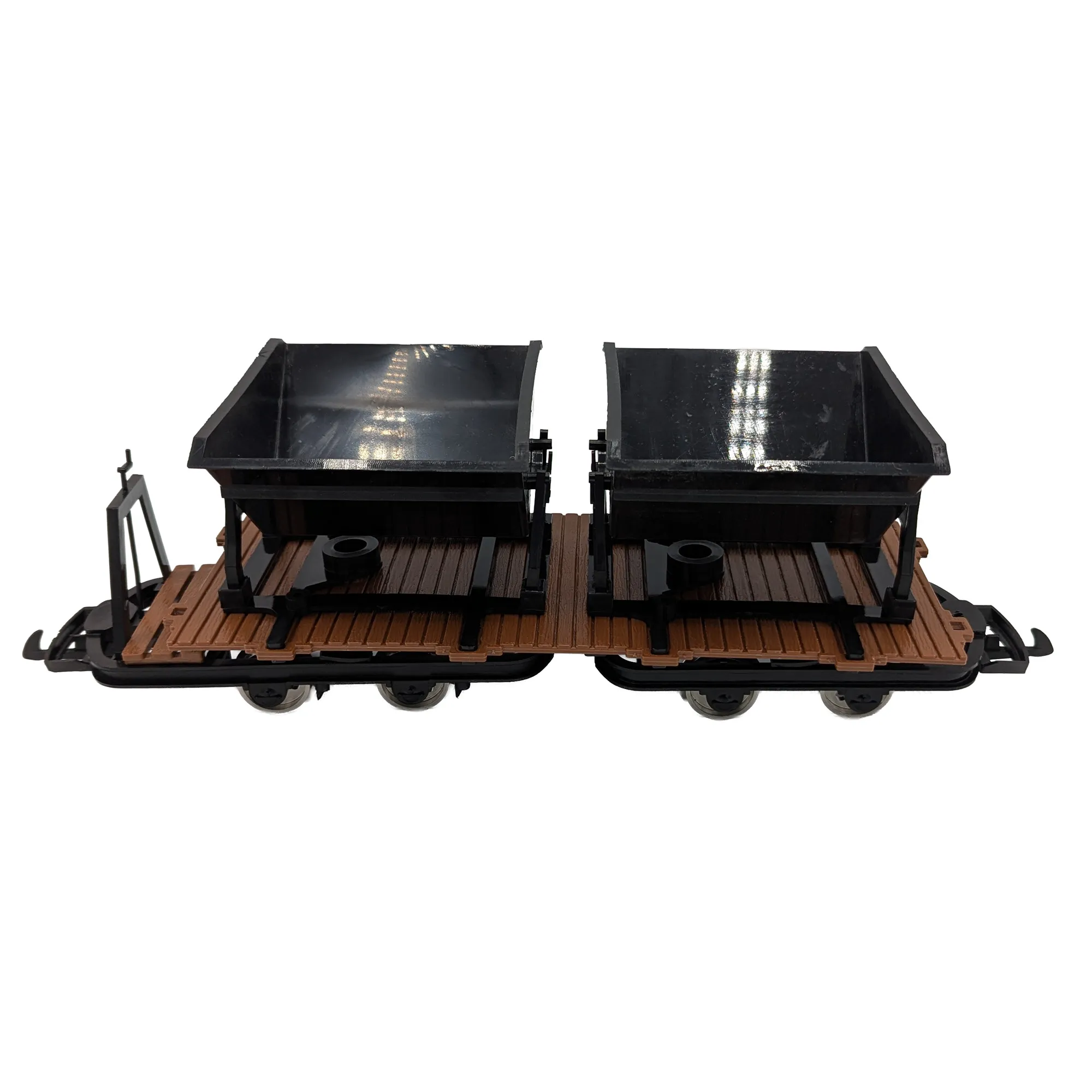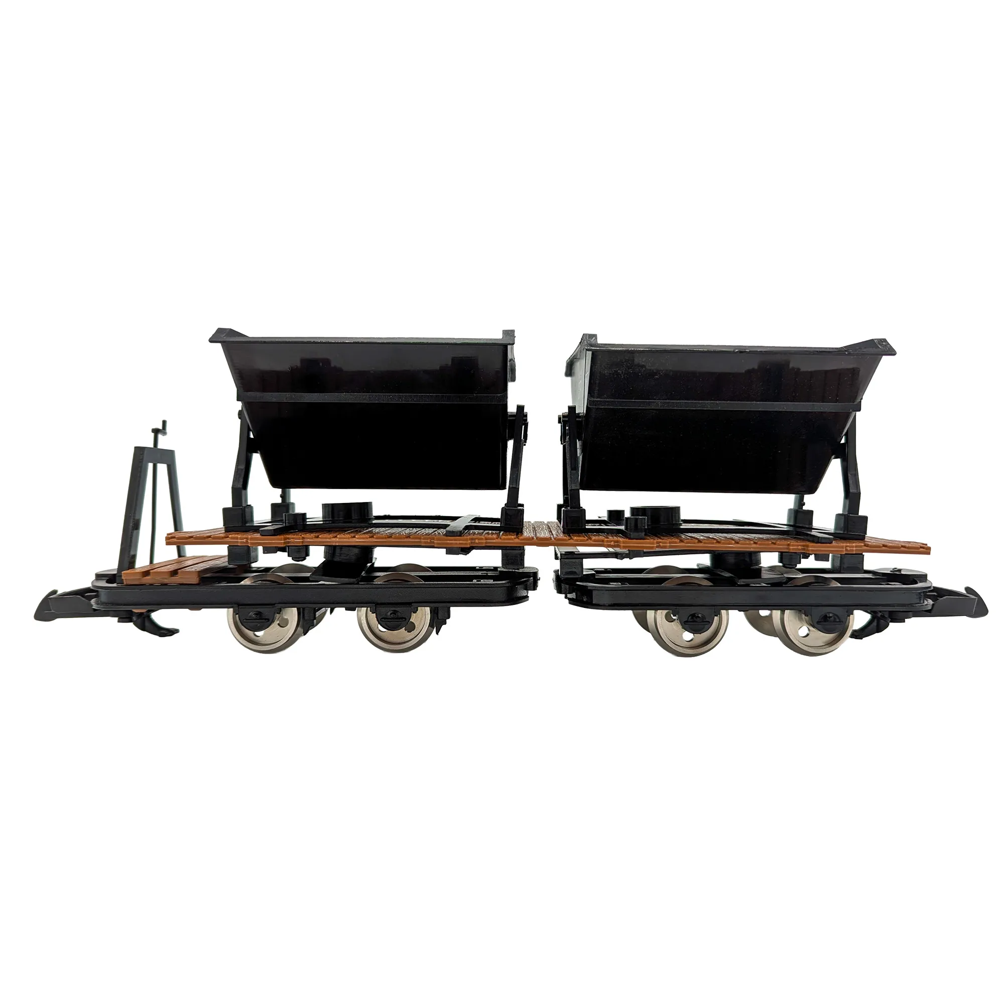 Dank standardisierter Adapter bleibt der Aufbau zukunftsfähig: Farbvarianten, zusätzliche Details oder alternative Konfigurationen können später ergänzt werden, ohne die Grundkonstruktion anzutasten. Alterungseffekte, Ladegüter und Figurenszenen verleihen der schwarzen Doppel-Kipplore zusätzliche Tiefe.