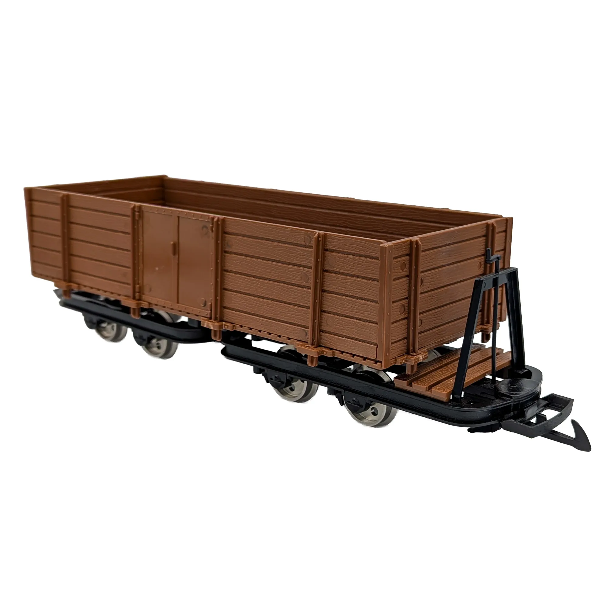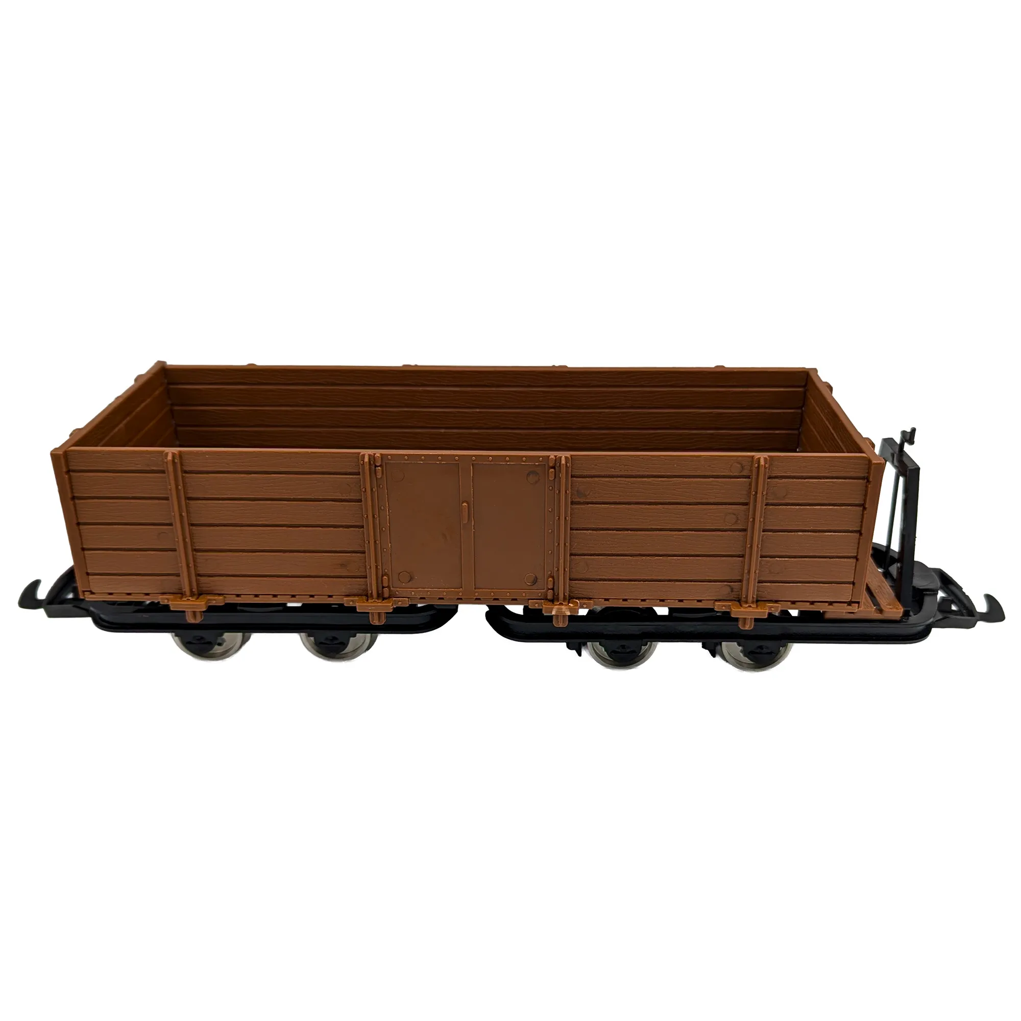 Einsatz auf der Modellanlage An Rampe oder Bunker erfolgt die materialintensive Beladung, während die hohen Wände sauber führen; am Ziel wird ausgeschaufelt, umgeladen oder per Kippbühne entleert. Der Wagen fügt sich stimmig in Züge mit Loren-, Rungen- und Werkswagen ein; Patina, Kratzspuren und Schüttguttexturen kommen auf der Holzstruktur besonders glaubwürdig zur Geltung.