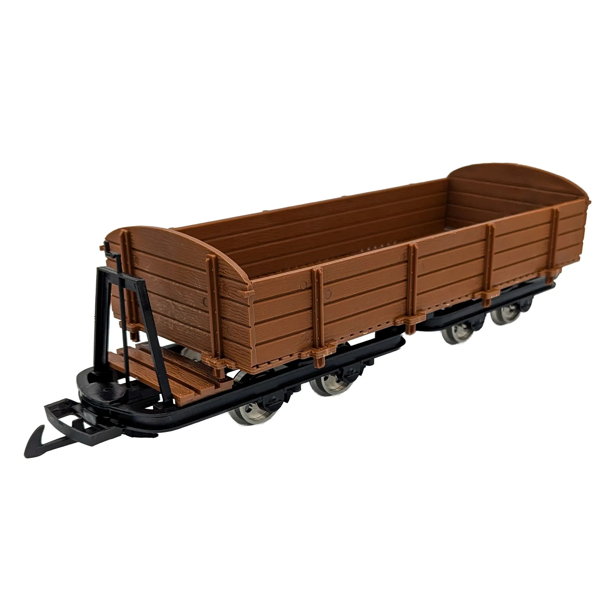 Einsatz auf der Modellanlage An Rampe oder Lagerplatz wird Schütt- und Stückgut aufgenommen, zwischen den Bordwänden ruhig befördert und am Ziel sauber abgesetzt oder ausgeschaufelt. Der Wagen fügt sich stimmig in Züge mit Loren-, Rungen- und Werkswagen ein; Patina, Kratzer und Staubspuren wirken auf den Holzflächen besonders glaubwürdig und erhöhen die Lesbarkeit der „arbeitenden“ Szene.