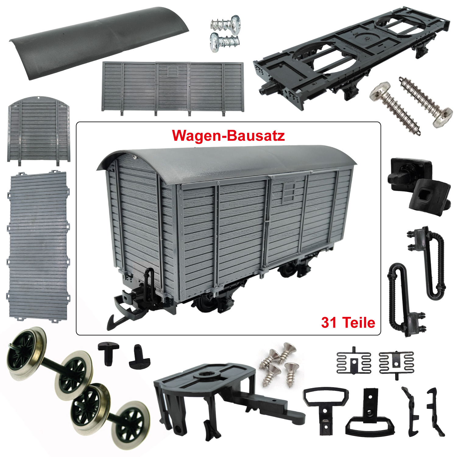 Gedeckter Güterwagen grau mit Doppelspeichen-Metallräder als Spur-G Bausatz ML-Train 88921610