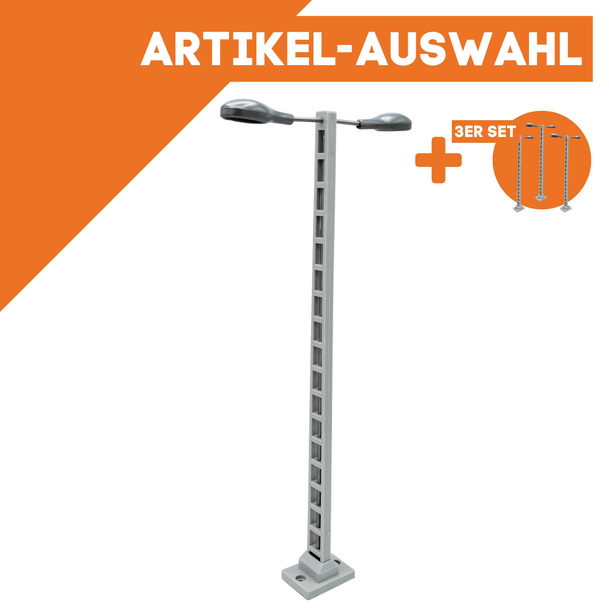 Die Gittermastleuchte überzeugt durch ihre detailgetreue Nachbildung, die Ihre Anlage nicht nur optisch aufwertet, sondern auch für stimmungsvolle Beleuchtung sorgt. Die doppelte Lampenkonstruktion mit sechs warmweißen LEDs stellt eine gleichmäßige und atmosphärische Ausleuchtung sicher – ein unverzichtbares Detail für alle, die Wert auf realistische Nachbildungen legen.