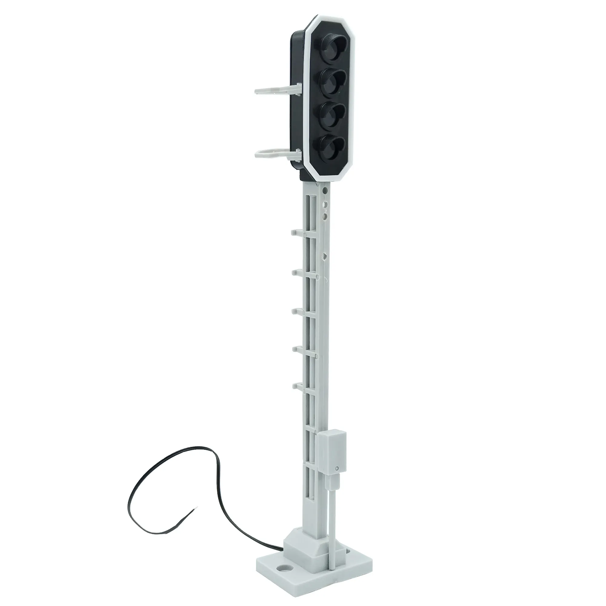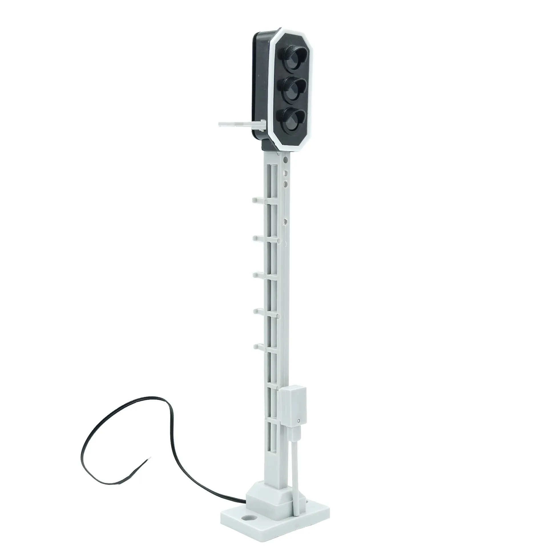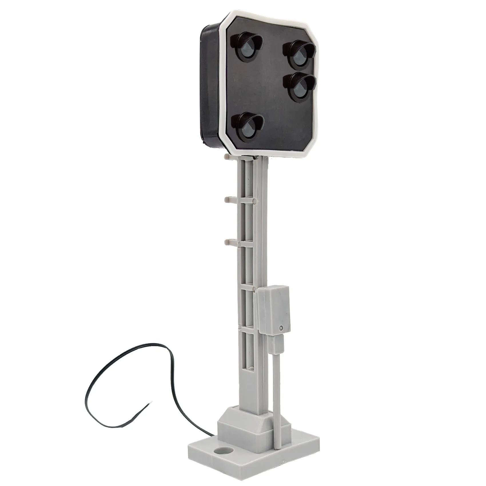 Die Typ-L-Hauptsignale übernehmen die eigentliche Steuerung der Zugfahrten. Ein dreibegriffiges Signal eignet sich etwa als Einfahr- oder Gruppensignal, während vier Begriffe zusätzliche Fahr- oder Geschwindigkeitszustände ermöglichen und damit Abzweige, Bahnhofsausfahrten oder Knotenpunkte absichern. Mehrfarbige LEDs in Rot, Gelb und Grün sorgen für klare, gut erkennbare Signalbilder bei geringem Strombedarf. Mast und Gitterkonstruktion bestehen aus lackiertem Metall, ergänzt durch wetterfesten Kunststoff, sodass die Signale sowohl innen als auch außen dauerhaft eingesetzt werden können. Der integrierte Digitaldecoder bietet vollständige NMRA-DCC-Kompatibilität; im Analogmodus lassen sich die wichtigsten Grundstellungen weiterhin nutzen.