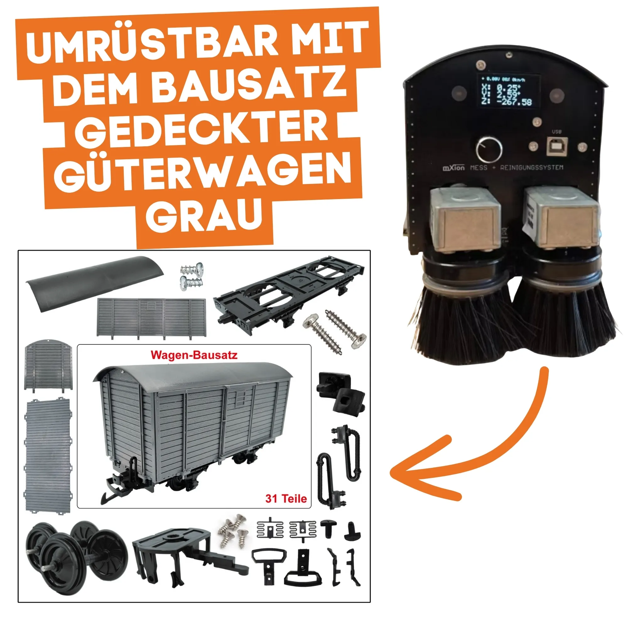 In der braunen Variante verbindet der Mess- und Reinigungs-Güterwagen von ML-Train effektive Gleispflege mit präziser Messtechnik. Seit Jahren kommen Bürstenwagen zum Einsatz; mit der digitalen Entwicklung rückt zusätzlich die live erfasste Datengrundlage zu Spannung, Geschwindigkeit und Streckenlage in den Fokus. Der Bausatz führt robuste Reinigungslösungen mit moderner Sensorik an Bord zusammen und integriert alles in einen klassisch braunen Güterwagenkörper.