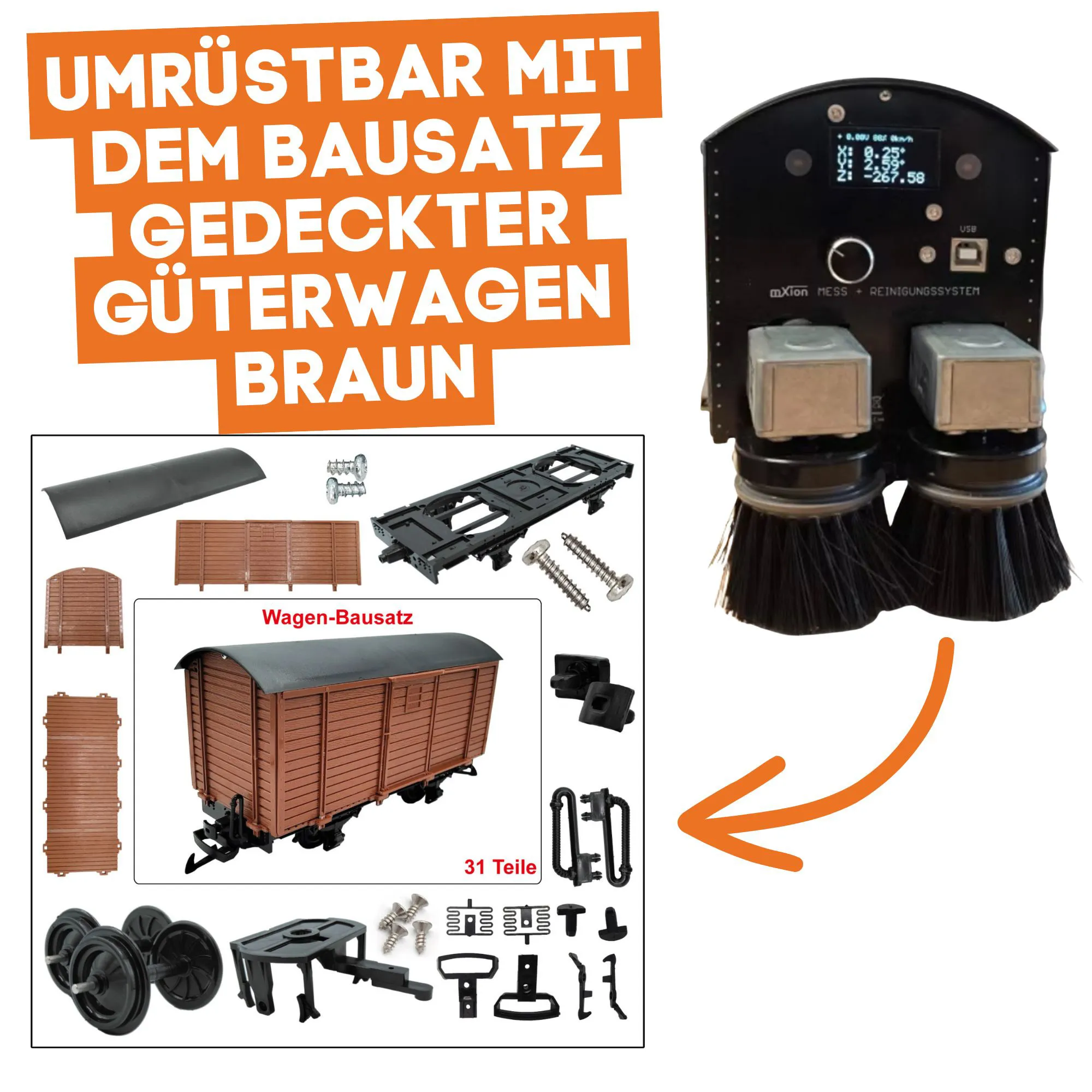 Der Mess- und Reinigungs-Güterwagen von ML-Train bündelt zwei Disziplinen, die im Modellbahnbereich selten zusammenkamen: konsequente Gleisreinigung und das präzise Vermessen des Anlagenbetriebs. Bürstenfahrzeuge sind seit Langem bewährt – mit der digitalen Evolution entstand der Bedarf, neben Sauberkeit auch Messdaten zu Spannung, Geschwindigkeit und Streckenlage zu erfassen. Dieser Bausatz baut auf der Tradition zuverlässiger Reinigungswagen auf und ergänzt sie um moderne Sensorik samt Auswertung direkt im Fahrzeug.