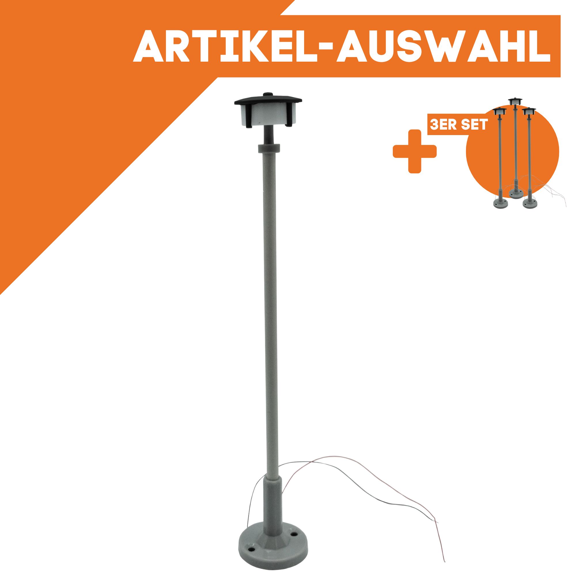 Technische DatenHöhe der Laterne = 23,5 cmSockeldurchmesser = 3,8 cmBetriebspannung = 10 - 22 Volt (DC, DCC)Farbe = grau4x LED als LichtkranzMast aus Messing, lackiertVerstärkter Fuß aus ASA-KunststoffwetterfestDie folgende Firma hat das Produkt für ML-Train hergestellt:micron-dynamics, Marius Dege,