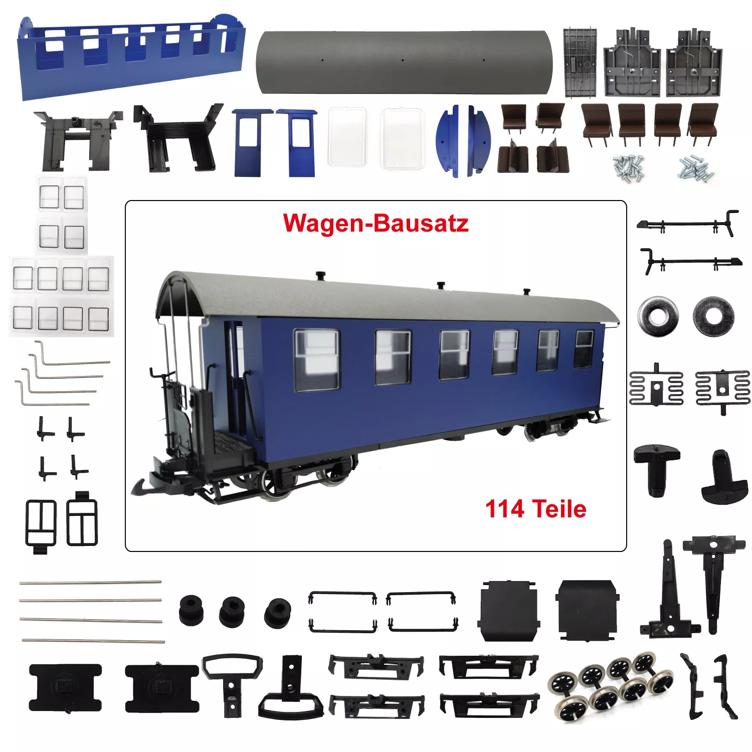 Die HSB und die DR setzten im Schmalspurbereich verschiedene Personenwagen ein, um Touristen zum Brocken und anderen Zielen zu befördern. Der hier vorgestellte Bausatz enthält alle Teile, um einen blau lackierten Personenwagen mit offenen Türen an den Stirnseiten zu bauen. Mit einer detaillierten Anleitung ist der Zusammenbau einfach und unkompliziert.