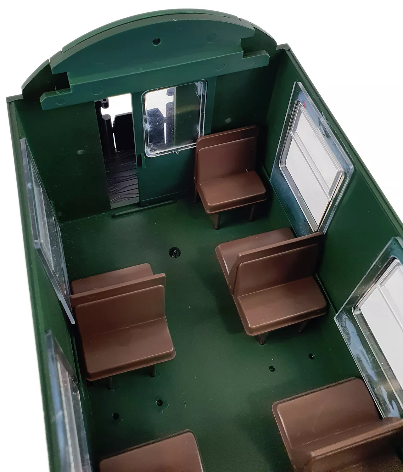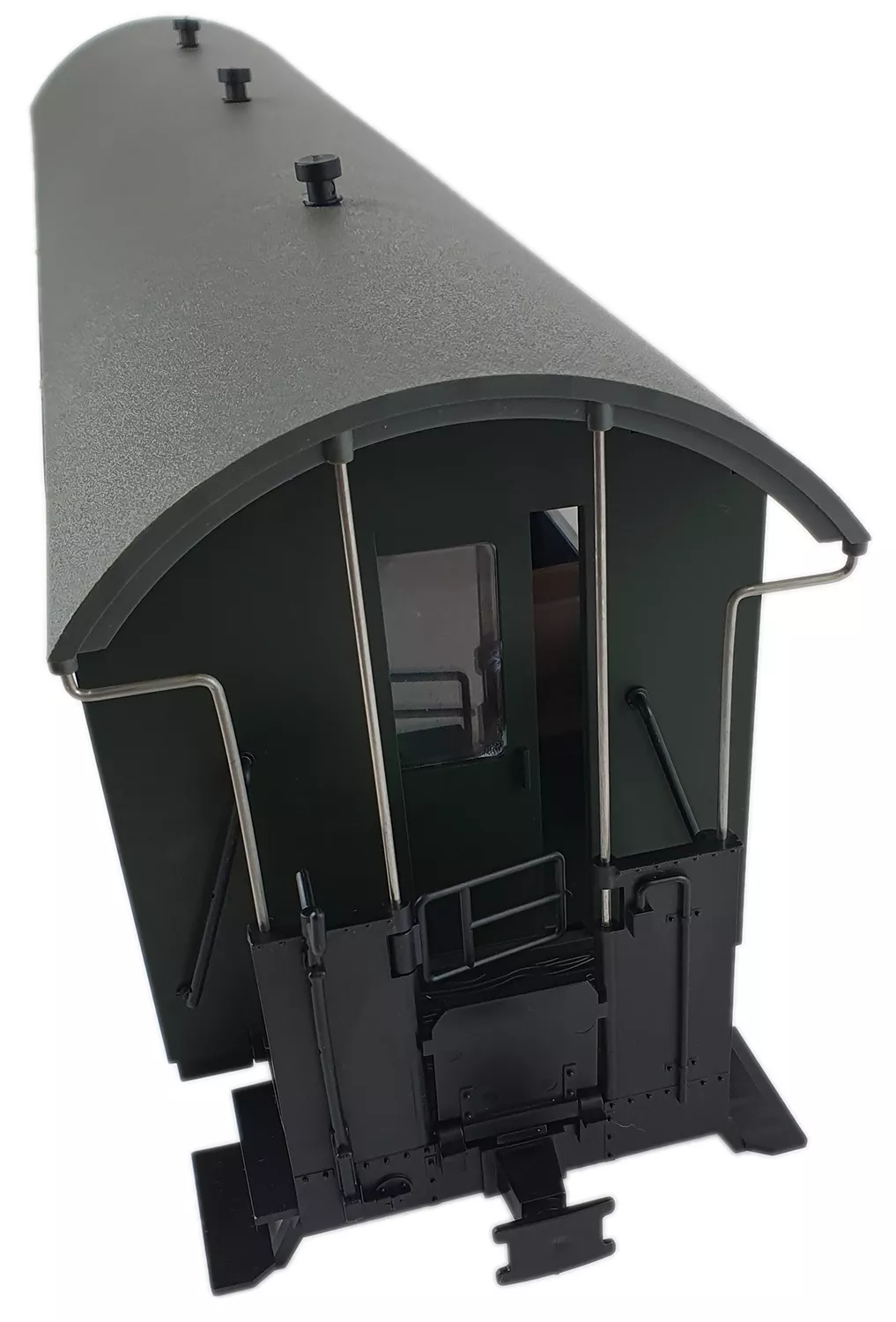 Die HSB und die DR nutzten verschiedene Personenwagen im Schmalspurbereich, um Touristen zum Brocken zu befördern. Dieser Bausatz eines grün lackierten Personenwagens mit offenen Türen an den Stirnseiten enthält 114 Teile und ist dank einer detaillierten Anleitung einfach zusammenzubauen. Zur Fertigstellung des Modells benötigen Sie Spezialkleber für die Fenster und Bänke (Pattex