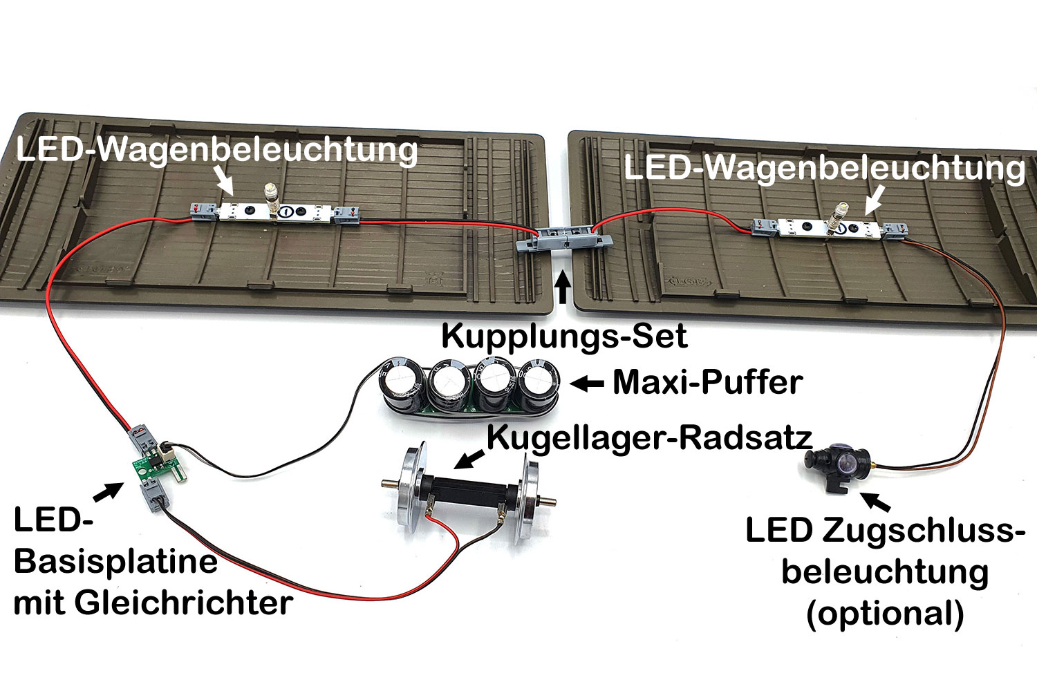 Hier finden Sie ein paar Beispiele wie Sie mit dem Radsatz Personenwagen beleuchten können: