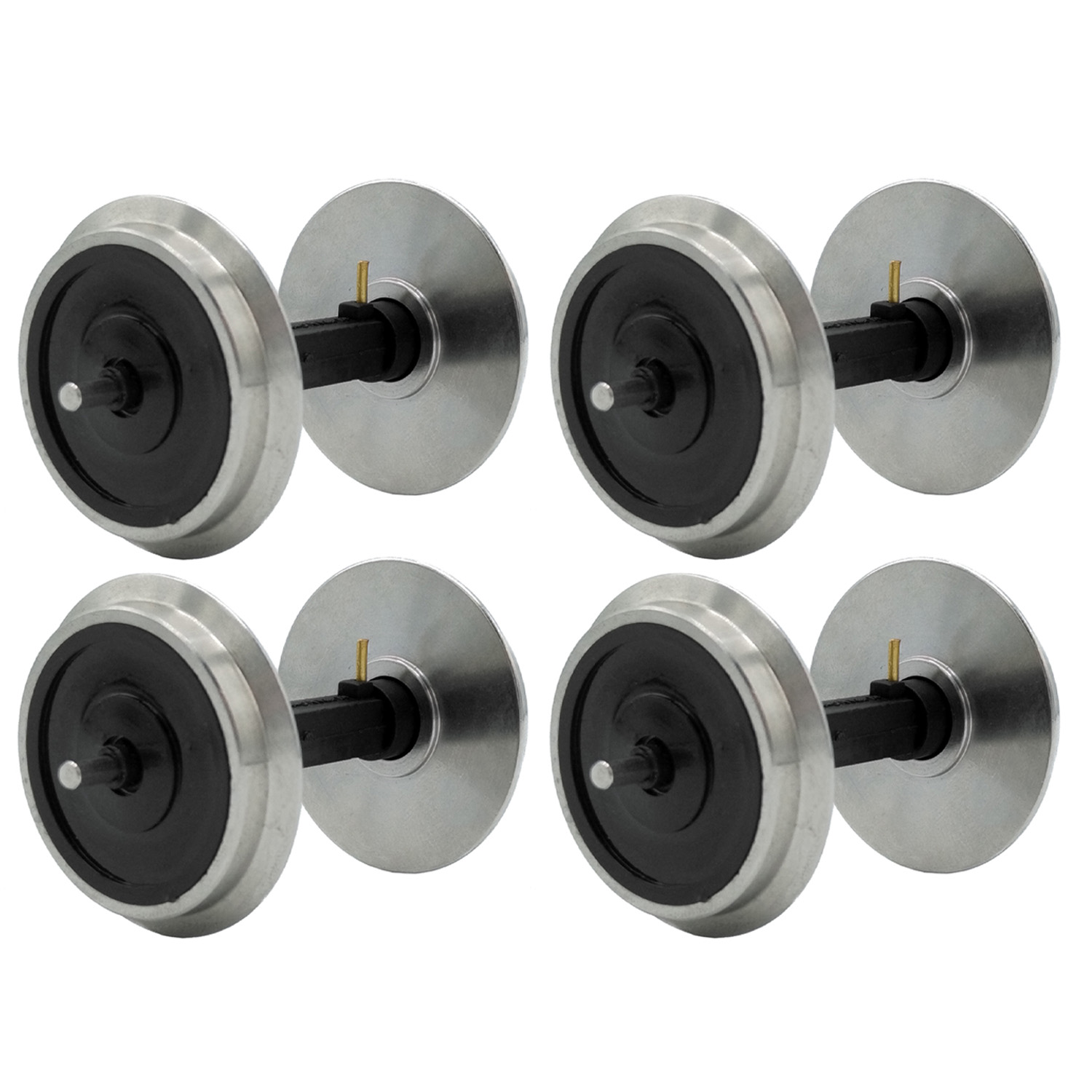Die reibungsarmen Radachsen bestehen aus hochwertigem Edelstahl und sind mit einem integrierten Stromabnehmer versehen. Ihre Abmessungen entsprechen exakt denen des Radsatzes Piko 36165.