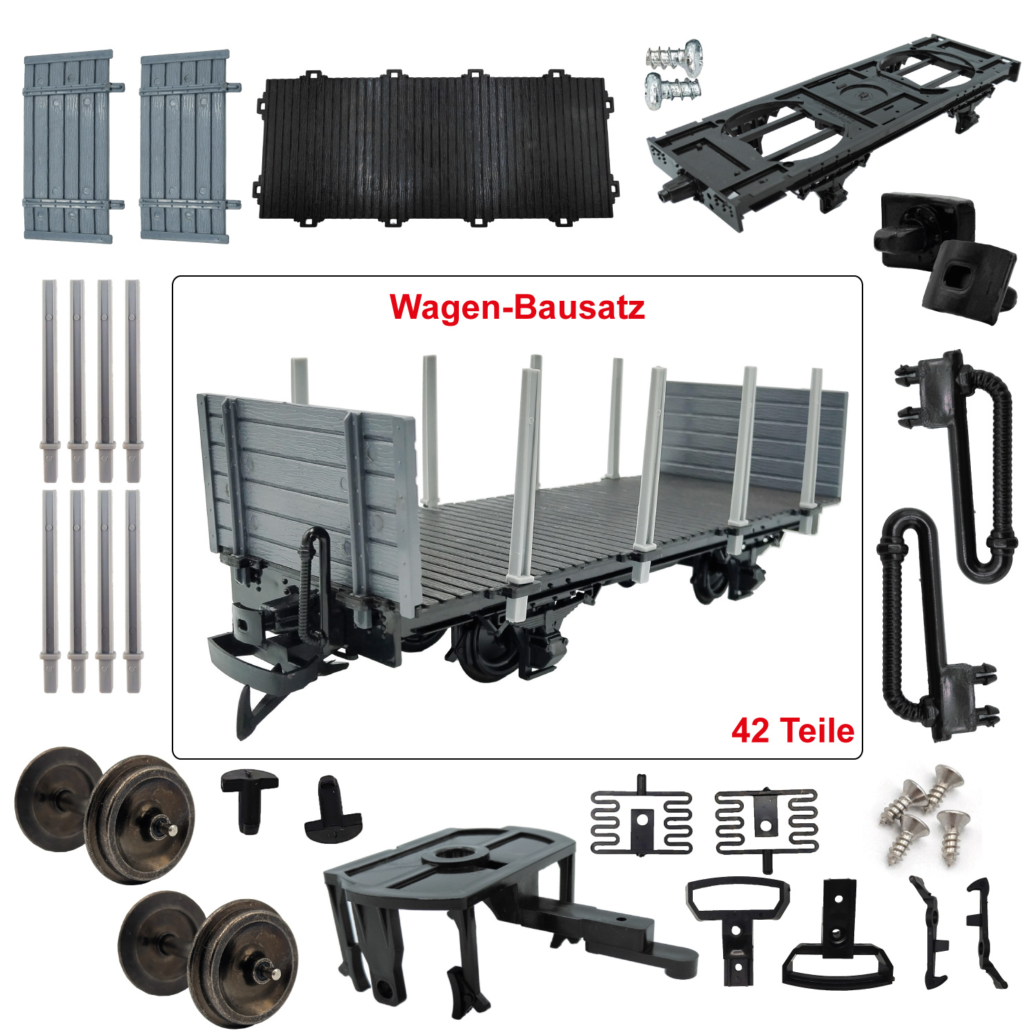 Rungenwagen mit Seitenwänden schwarz/grau mit Metallräder als Spur-G Bausatz ML-Train 88919600