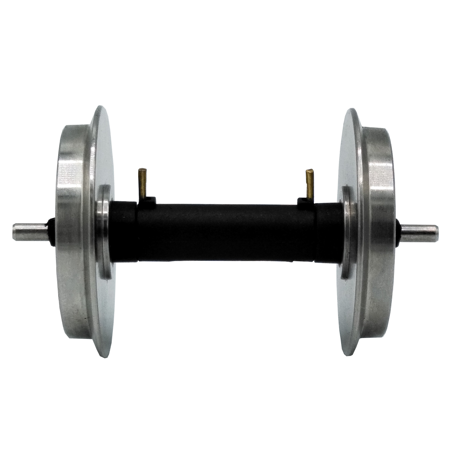 Die reibungsarme V-Speichen Radachse aus Edelstahl ist mit einem integrierten Stromabnehmer ausgestattet. Der Durchmesser der Lauffläche beträgt 31 mm.