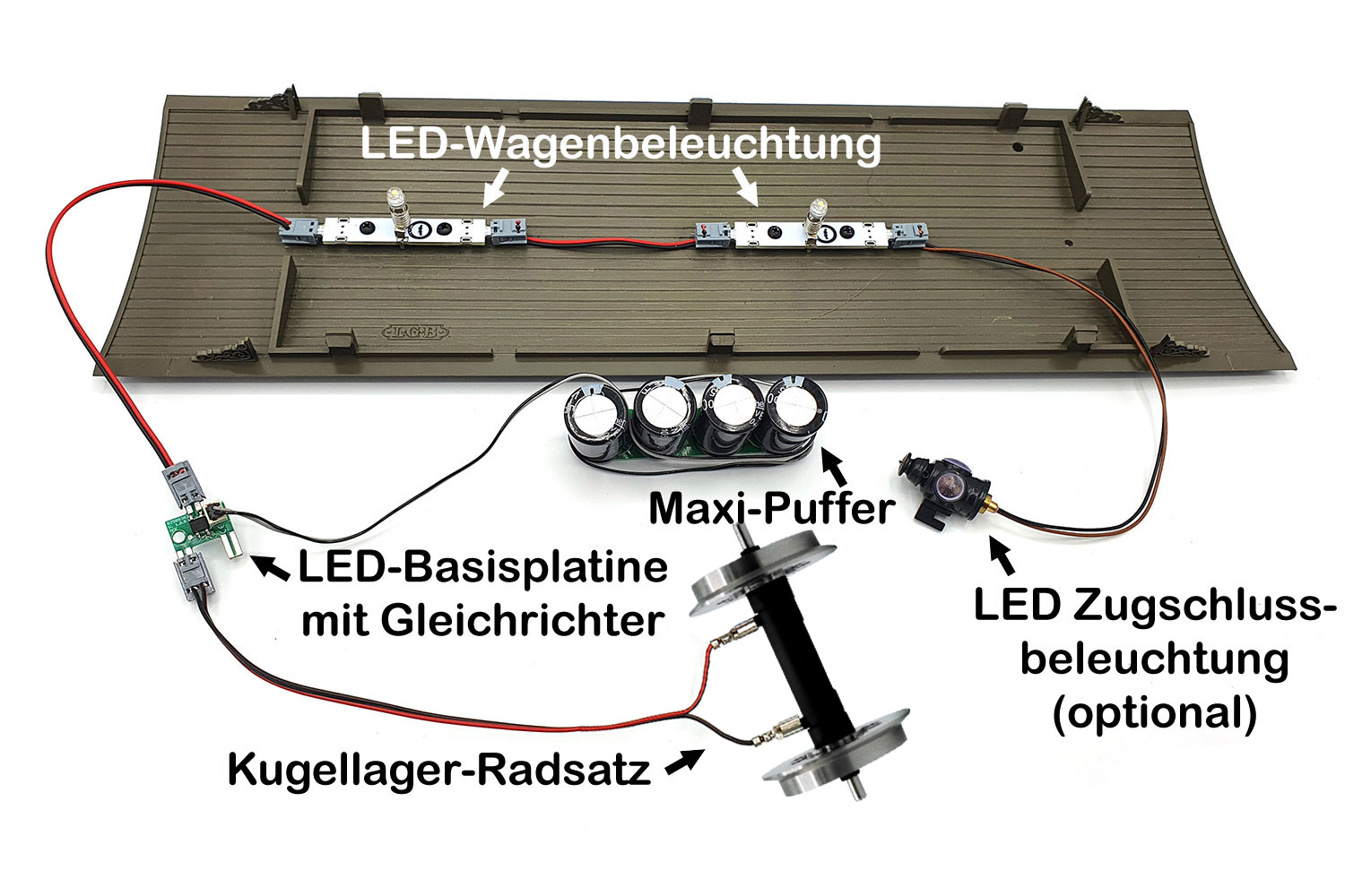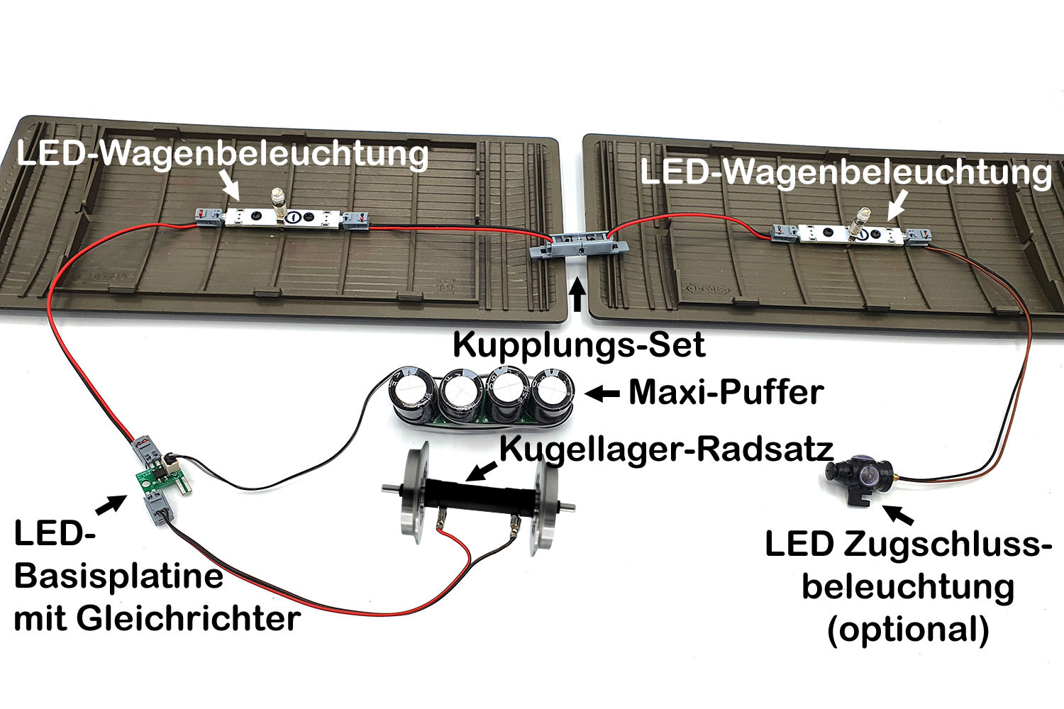 Hier finden Sie ein paar Beispiele wie Sie mit dem Radsatz Personenwagen beleuchten können:
