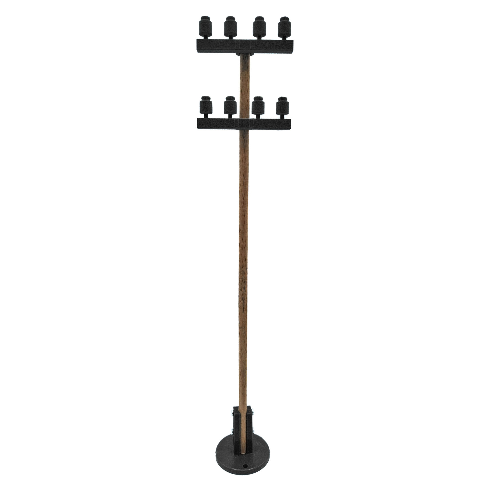 25 cm hoher Telegraphenmast in Spur G, nach historischem Vorbild klassischer Telefonmasten gefertigt – ideal für eine realistische Ausstattung von Bahnstrecken, Bahnhöfen und ländlichen Szenen. Echtholz-Mast
