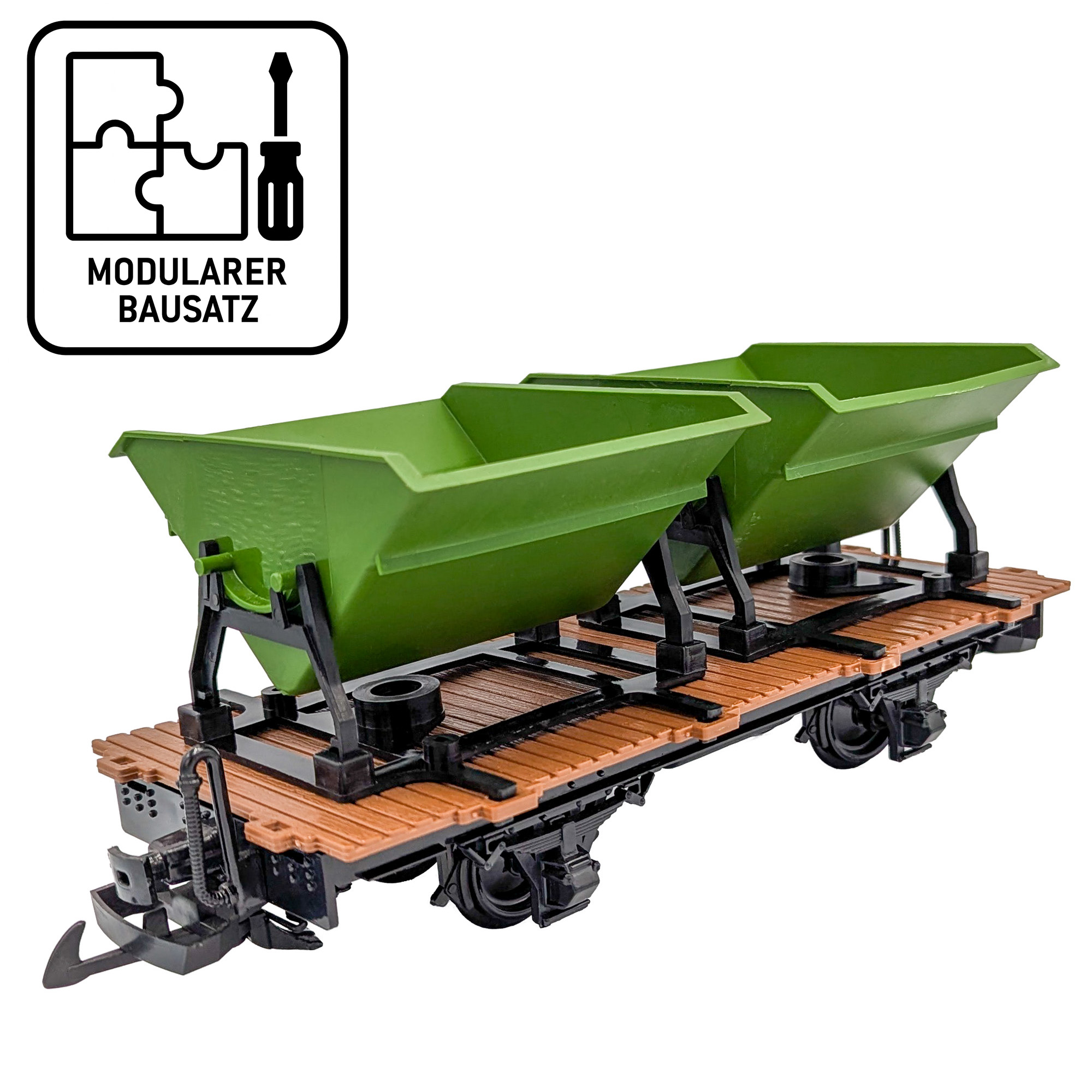 Träger-Flachwagen mit Doppel-Kipplore grün als Bausatz Spur G ML-Train 88919385