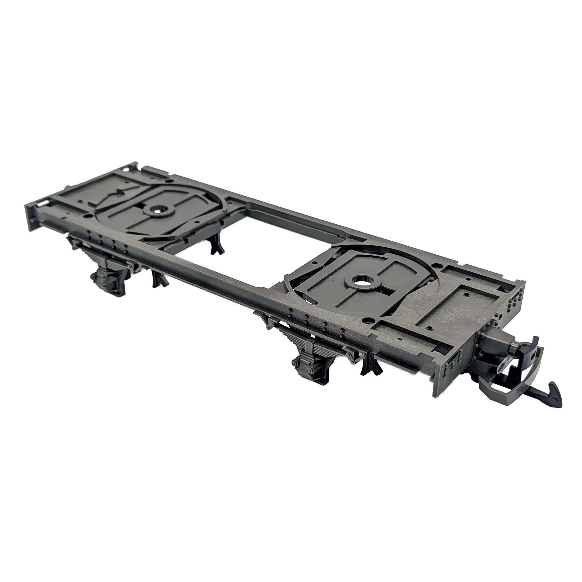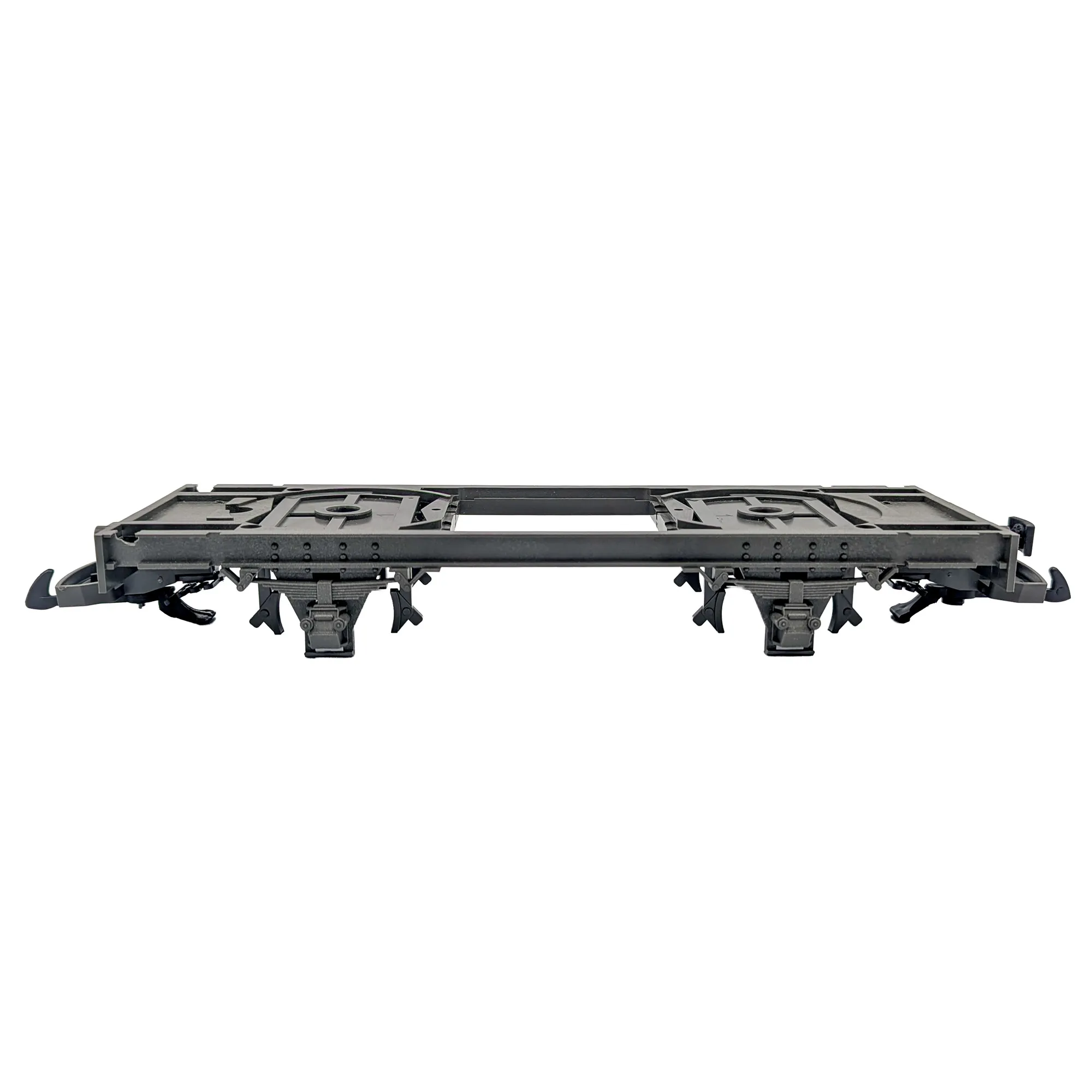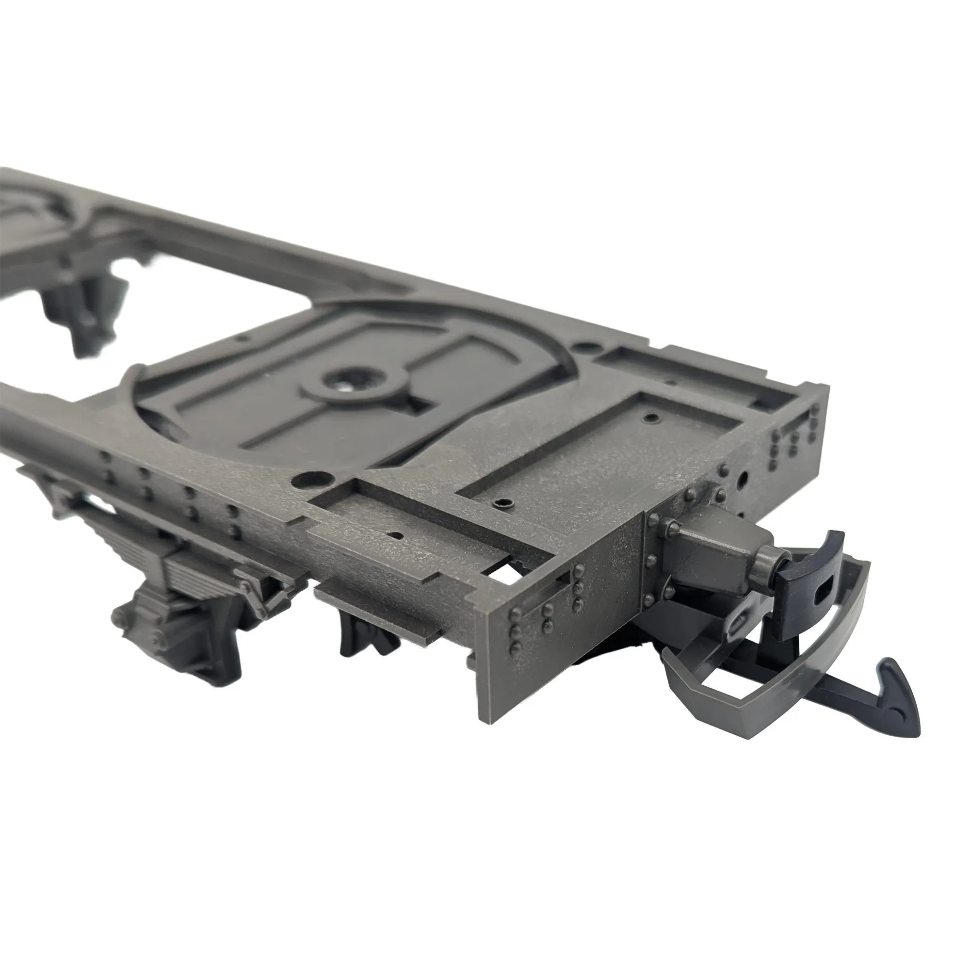 Fahrrahmen, Drehgestelle und Kupplungsbügel sind komplett in Grau gehalten – für ein durchgängiges Erscheinungsbild und flexible Kombination mit verschiedenfarbigen Wagenaufbauten.