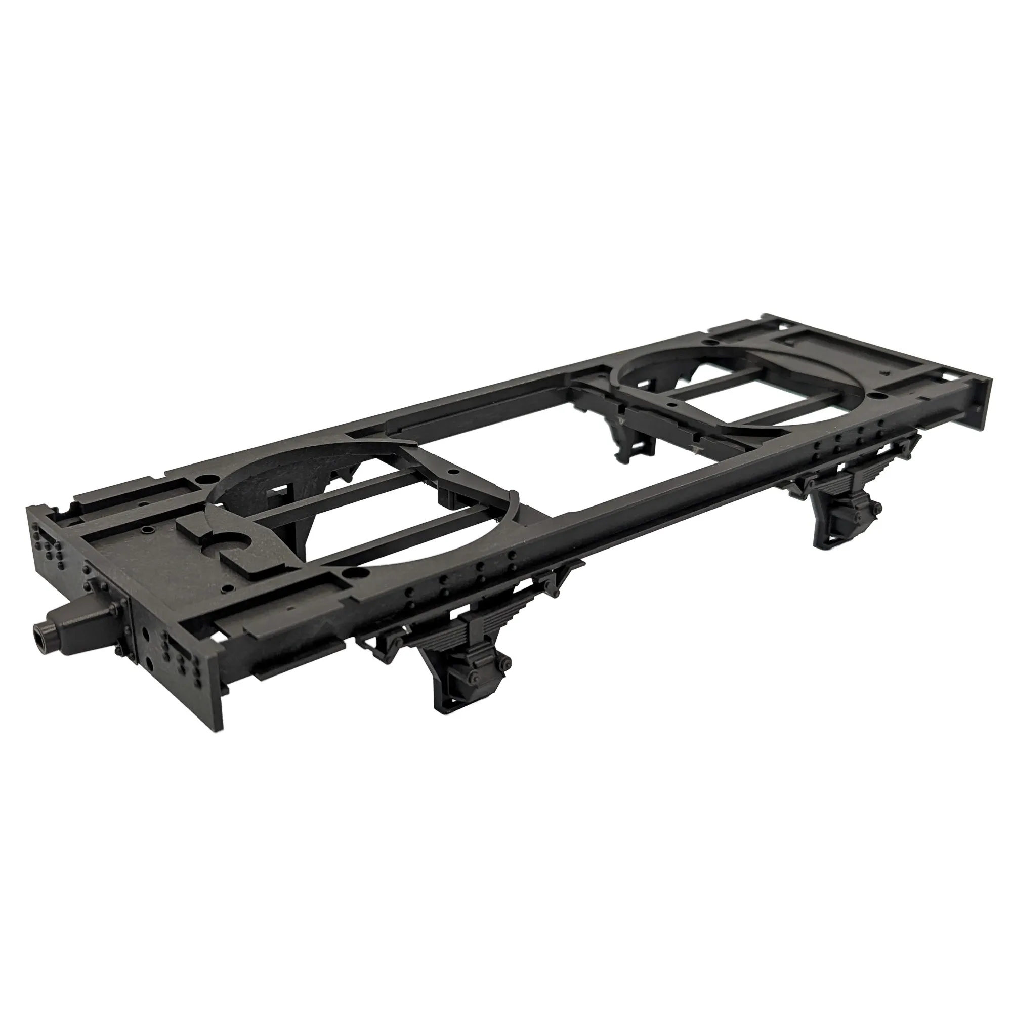 Enthalten sind zwei graue Drehgestelle mit Kupplungselementen und ein robuster, grauer Universal-Fahrrahmen (30 cm Länge über Puffer). Dieses Set eignet sich hervorragend für alle, die Spur-G-Wagen von LGB oder ML-Train umbauen, instand setzen oder selbst gestalten möchten. Der eingesetzte Werkstoff – glaskugelverstärktes Polyamid – gewährleistet Stabilität und Langlebigkeit auch bei Außeneinsatz. Die Lieferung erfolgt unmontiert, wodurch individuelle Anpassungen problemlos möglich sind.