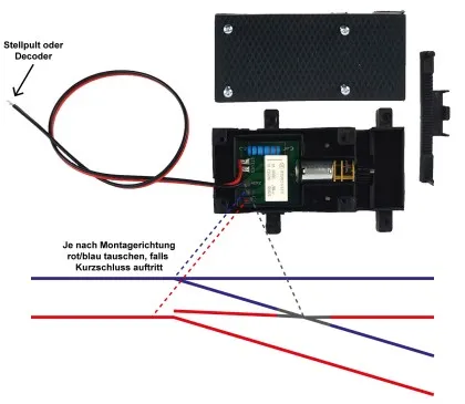 Ein integriertes Relais sorgt für automatische Herzstückpolarisation – auch im Analogmodus. Die zuletzt gewählte Position bleibt per Impuls gespeichert.