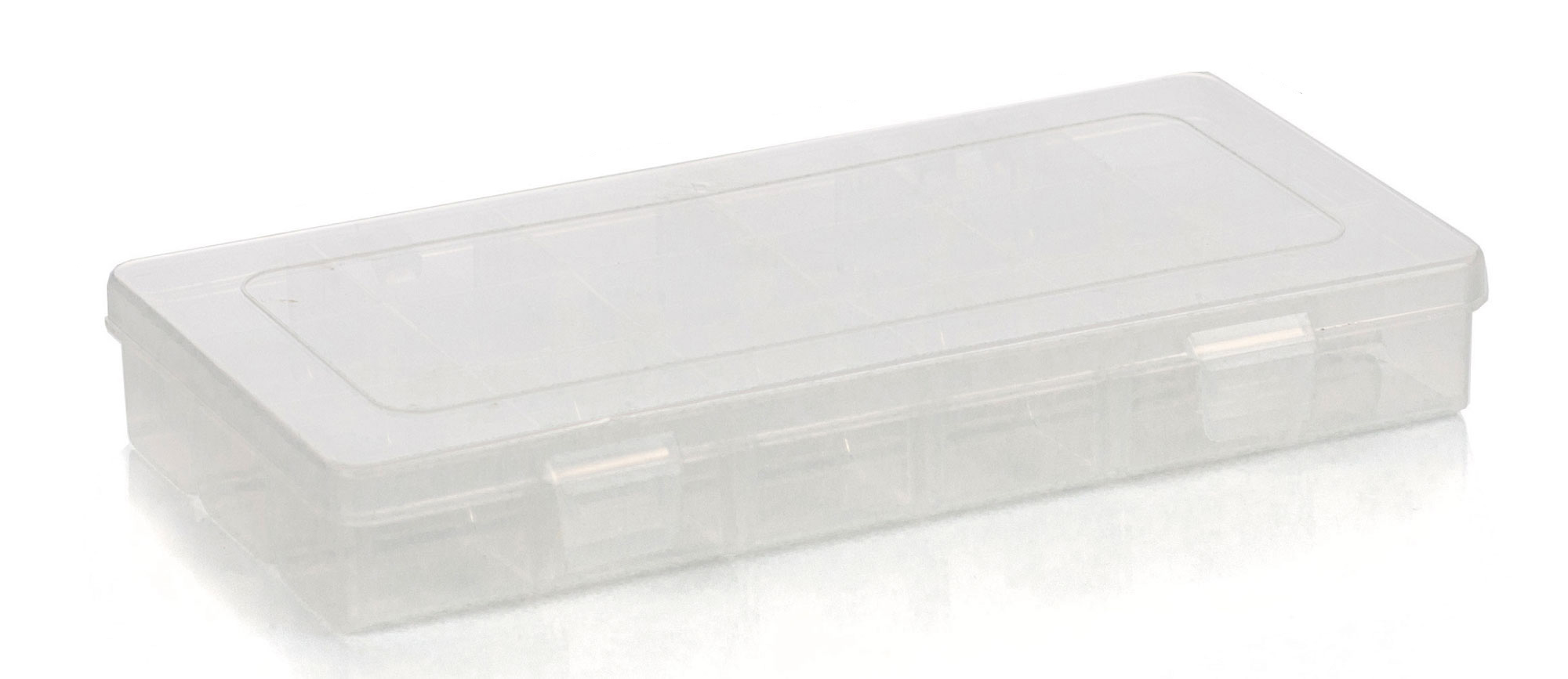 Widerstandsfähige Kunststoffausführung für wiederholtes Öffnen, Sortieren und Transportieren. Geeignet für den regelmäßigen Einsatz im Modellbaualltag und für mobile Einsätze rund um die Anlage. Teil eines Systems
